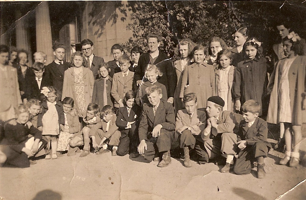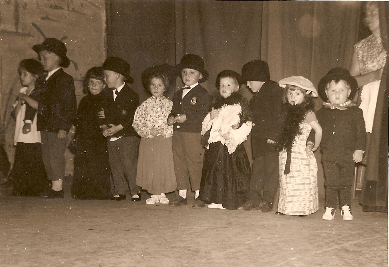 COQUETTE. Debout : Léa FREDERICQ, … ( ?)… , Hélène (mère de J-P Coquette), …( ?)..., Marthe LEBOT (mère d’Anne-Marie Montegnies), Loulou ESCALIER, Annie HANOT, Edmond ROBERTE, Nicole DOSSE, Madame DOSSE (mère de Nicole Dosse), Simon LUCAS, Edgar LESCOT, Placidie DECLERCQ, Madame DEHOUX (grand-mère de Placidie Declercq), Mariette LEKEUCHE, Esther TORCK, Odette HELLIN, Thérèse VANLANDUYT, Florentine DUROISIN, Anne-Marie MONTEGNIES, Marie-Jeanne DENEVE, Josette BLANGENOIS. |