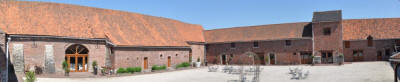 histoire : Avant de quitter les lieux, entrouvrons un des battants de cet étage et jetons un coup d' oeil sur la cour. D' ici enfin nous pouvons réellement nous faire une idée de l' ensemble que formaient ces bâtiments : au-delà du mur et des appentis qui divisent la cour, il saute aux yeux que les étables ont été conçues par un même constructeur.