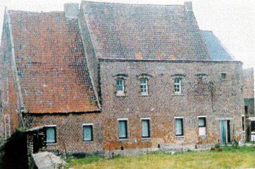 A l' est se détache une sorte d' annexe élevée, aux angles cassés, autrefois percés d' occuli comme pour un choeur d' église mais un peu moins élevé que ce qui serait la nef. Ce lieu a bien servi autrefois de chapelle. Depuis quand et jusqu' a quand ? Au milieu de la partie principale, une construction à étage, en briques foncées aussi. Si, visiblement, les ouvertures du rez-de-chaussée ont été remaniées, les fenêtres de l' étage sortent tout à fait de l' ordinaire. Rien de commun avec les habitations types de nos campagnes. Petites, certaines rebouchées, elles sont surmontées d' un important larmier de briques légèrement cintré. A l' ouest, un bâtiment semble à première vue être une annexe. Pourtant ces briques de couleur orange, ce toit d' une hauteur impressionnante et à la pente relativement raide, tout cela nous laisse croire qu' il doit être antérieur aux parties précédentes. Et reprenant quelques instants les écrits, nous y trouvons une explication : un nouveau malheur survient aux religieux de Saint-Médard : la plus grande partie de leur ferme est incendiée en 1585. Le quartier de l' Abbé, situé du côté de Maubray, est la seule partie à être conservée. Elle correspond à celle que nous observons pour le moment. Ces faits nous apportent aussi une explication à la présence, à l' angle gauche de la partie centrale, des briques d' ancrage qui semblent encore attendre que l' on profite de la reconstruction de cette partie pour remettre l' ensemble au goût du jour. Mais cette bâtisse n' a pas fini de nous surprendre. Le pignon ouest