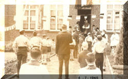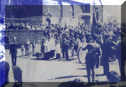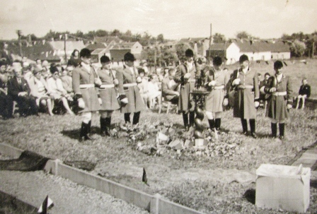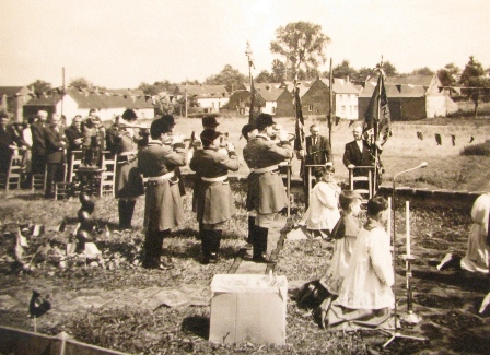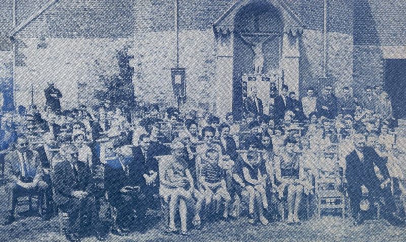 Les deux photos suivantes datent de 1963, c'est-à-dire de l'époque à laquelle l'eucharistie était célébrée à l'extérieur de l'église; il s’agit des cors du Rallye gayant, de Douai ; les maisons à l’arrière-plan appartiennent à la Rue du Marais, côté Rue du Porjet.
