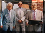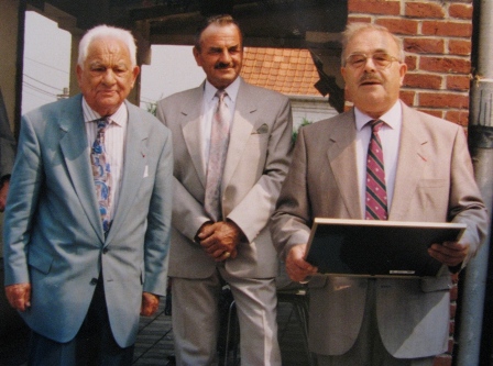 5.     En 1994, au cours du drink, un hommage fut rendu à Jacques DEREUX, le fidèle garde-chasse : MM LEROUX et DELEHAYE lui remirent conjointement la médaille d’or du ROYAL SAINT-HUBERT CLUB DE BELGIQUE.  Sur la photo, apparaissent, de gauche à droite, Robert LEROUX, Jacques DEREUX et Charles DELEHAYE.