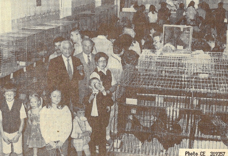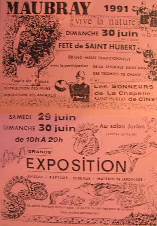 1. Couplage de la Saint-Hubert avec la Fête de la Nature : En 1970, le SYNDICAT D’INITIATIVE, tombé en désuétude, se vit substitué par l’association « Les Amis de la Nature », elle aussi présidée par ROBERT LEROUX. Dans la pratique, rien ne changea au niveau organisationnel pour ce qui concernait l’ornementation de l’église. Mais vint s’y adjoindre une exposition au Salon Jurion présentée par les « Petits Eleveurs du Tournaisis » (président : Charles JONAS), étalée sur tout le week-end ; une bonne centaine de sujets de choix (lapins, volailles, pigeons, etc...) y étaient présentés et ce, régulièrement pendant les 25 années qui ont suivi. La tradition voulait qu’après la messe une visite de l’exposition – ouverte au public – était de mise.