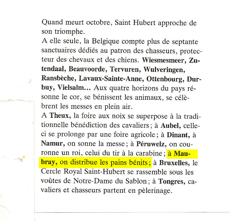 3.     Ainsi, depuis 1961, sans discontinuer, Maubray honore annuellement avec faste, à cheval sur juin-juillet, le saint patron des chasseurs.