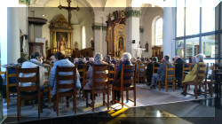 A l'issue de la cérémonie religieuse, il a été possible de rencontrer Madame Git GERVAIS qui a pu nous en dire plus sur son travail et sa passion de vitrailliste.