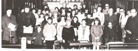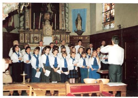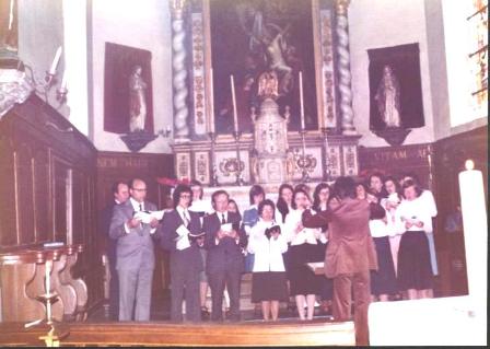 1988. La chorale est en fête le dimanche 14 février, nous solennisons les 10 ans de direction de Basile. L'église est remplie pour la circonstance par les sympathisants et mélomanes.