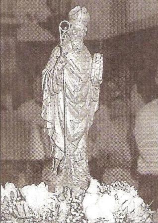 Lors de l'office nous avons pu redécouvrir une statue centenaire de Saint-Amand. Cette statue humaine d'un sculpteur inconnu est en bois sculpté, doré, elle a une hauteur de 50 cm.