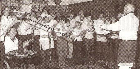 1987. Chemisiers blancs et foulards pour les dames, chemises blanches et cravates pour les hommes. C'est la première fois que la chorale se produit en uniforme le 4 mars. De l'avis unanime, la prestation est d'excellente qualité et les chants "a cappella" sont un régal pour les mélomanes, peut-on lire dans la presse locale.