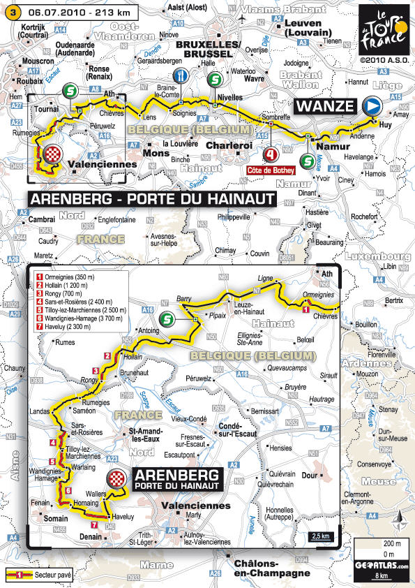 La troisième étape du Tour 2010 a pris son départ à Wanze près de Huy et l'arrivée est fixée à Arenberg - Porte du Hainaut (près de Valencienne)